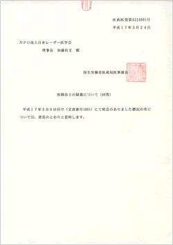 レーザー脱毛に関する医師法上の疑義に関する照会